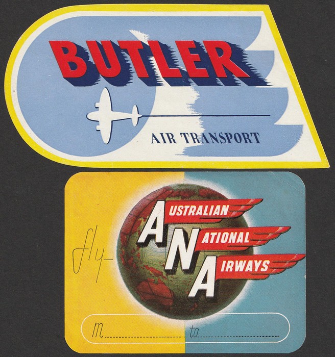 Air Transport, ANA Australian National Airways multi-colour luggage labels. VF fresh M. (2) (Image1)