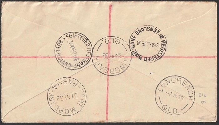 cover franked KGV 1d green tied by Brisbane 8 MR 31 cds, with same date vignette & R3 cachet. Superb fresh. AAMC R9 cat $130. (Image1) (Image2)