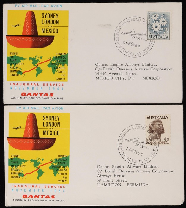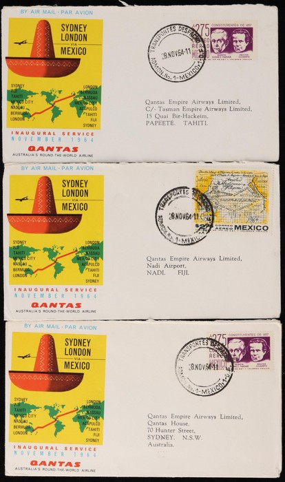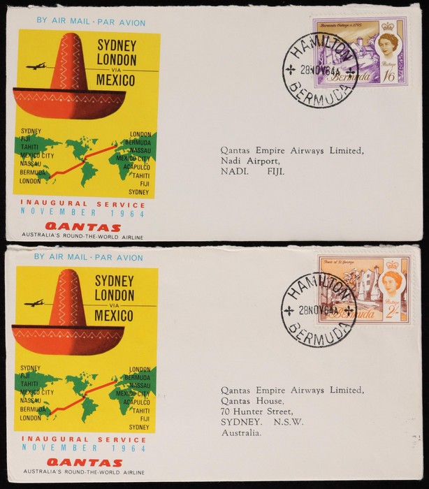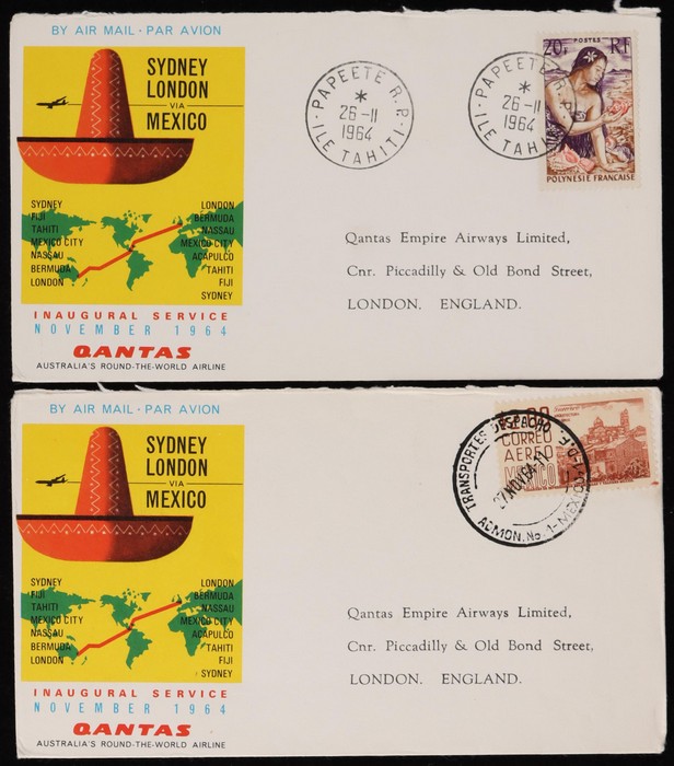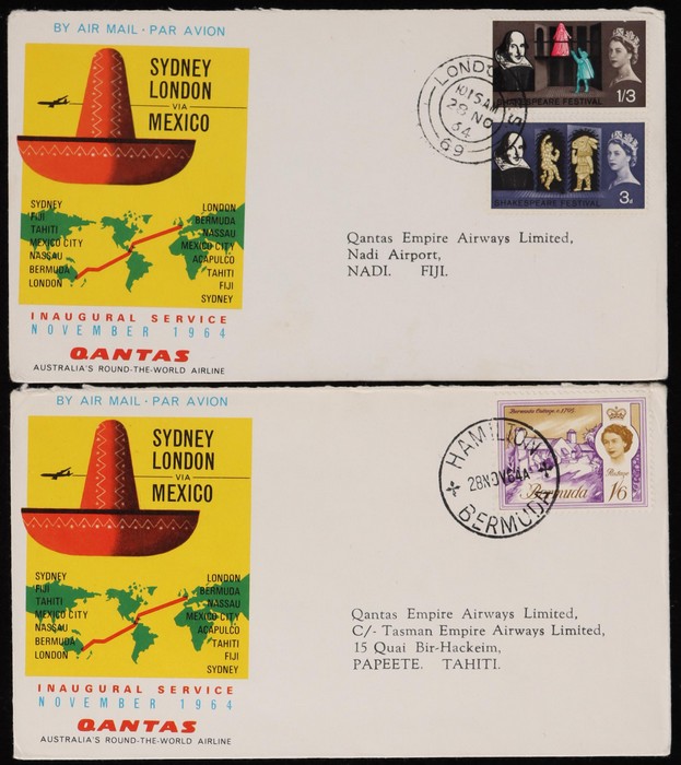 2672 image1964 Australia-London via Mexico FFC,, plus intermediates for Australia to Mexico & Bermuda, Fiji to Bermuda & London, Tahiti to London, & Mexico to GB. Then return flight intermediates of GB to Fiji, Bermuda to Tahiti, Fiji, & Australia, Mexico to Tahiti, Fiji & Australia. VF. AAMC 1530 & 30ca cat $520. (15). (Image1) (Image2) (Image3) (Image4) (Image5) (Image6) (Image7)