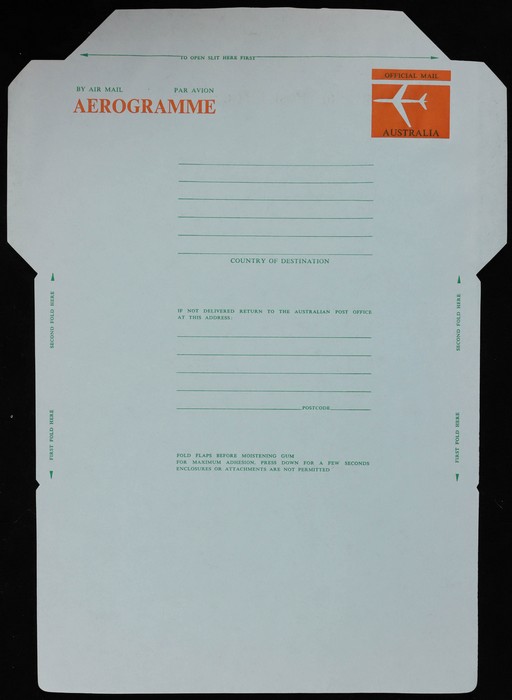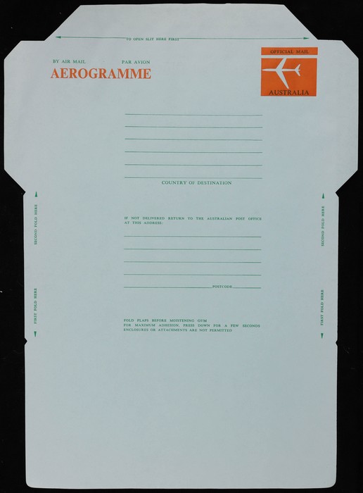 2675 imageAerogramme-Official: 1974 Jet 'Official Mail' stamp. Superb fresh UN, unfolded. ACSC AO5 cat $20++. (Image1)