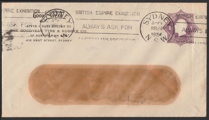 1922-24 KGV 1d violet Star with 'Postage' for Goodyear-unlisted user. VFU, Sydney MR 24 1924' pmk. ACSC ES41 cat $100. (Image1) (Image2)