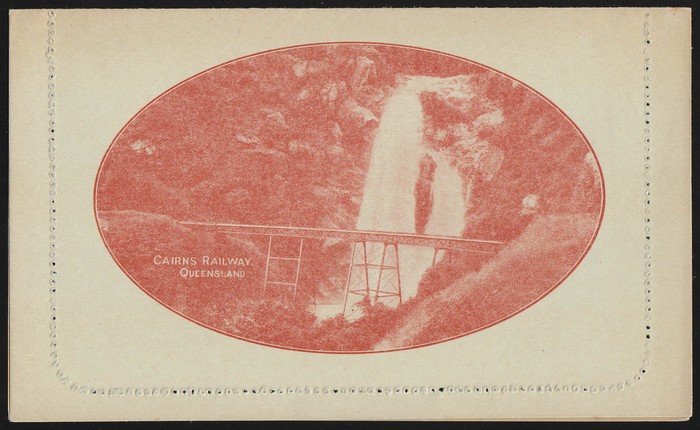 KGV Fullface 1d brown-red 1st line ends 'to' on grey-green stock, view Cairns Railway. VF UN. ACSC LC10(28A) cat $175. (P) (Image1) (Image2)