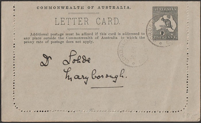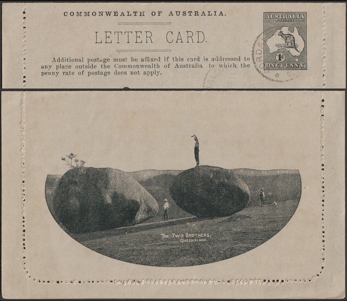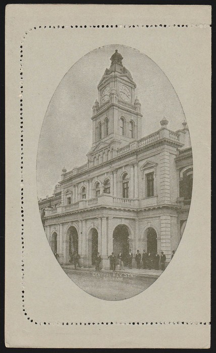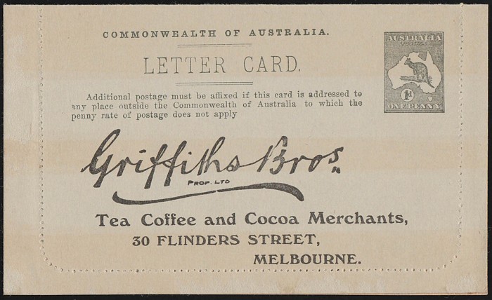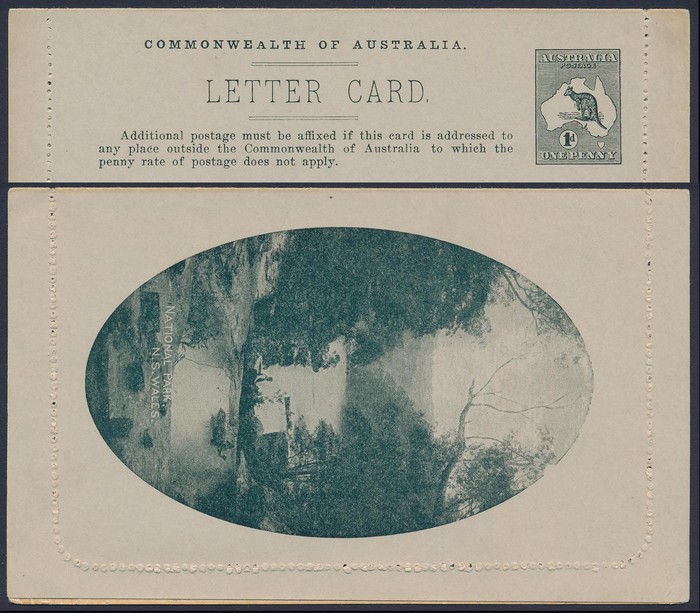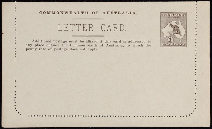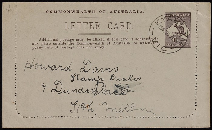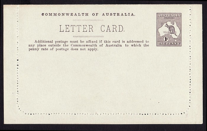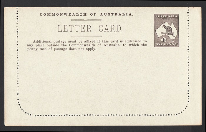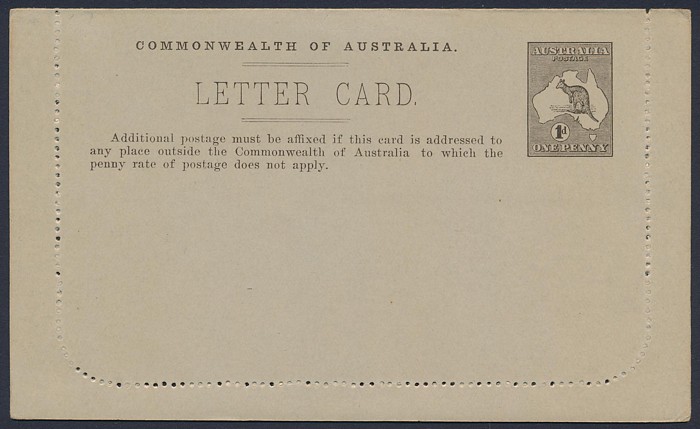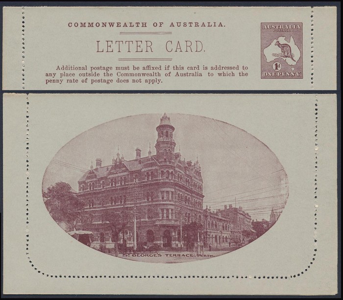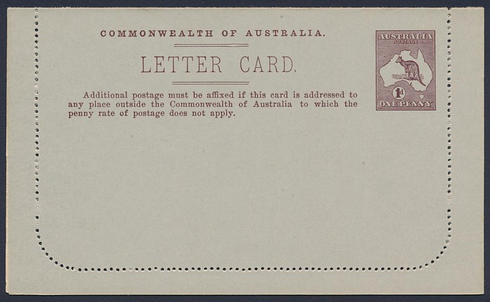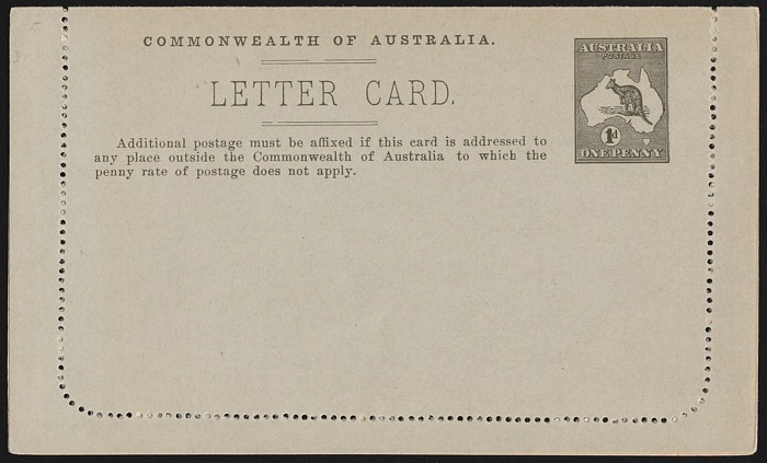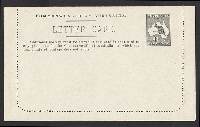 Kangaroo 1d grey, original die, view Central Rly Stn in rectangle. VF UN, front sl aging stripes & with printed address, view side superb. ACSC LC14(32D) cat $250.