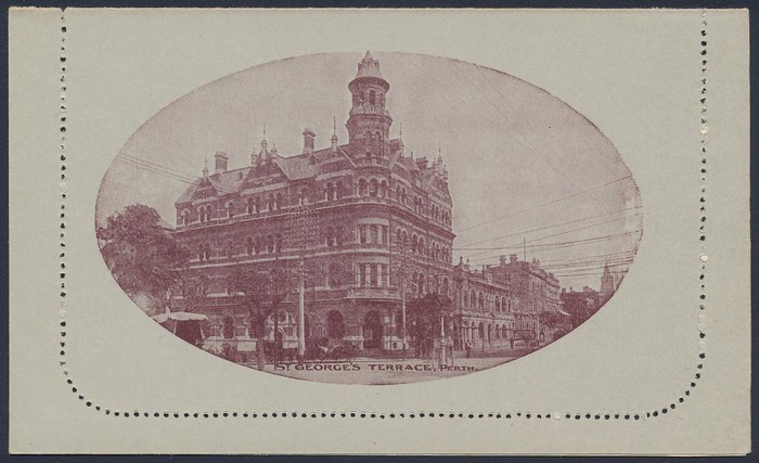 Kangaroo 1d brown-purple original die, view St George's Terrace, unframed. Superb fresh UN. ACSC L14(119C) cat $150. (Image1) (Image2)