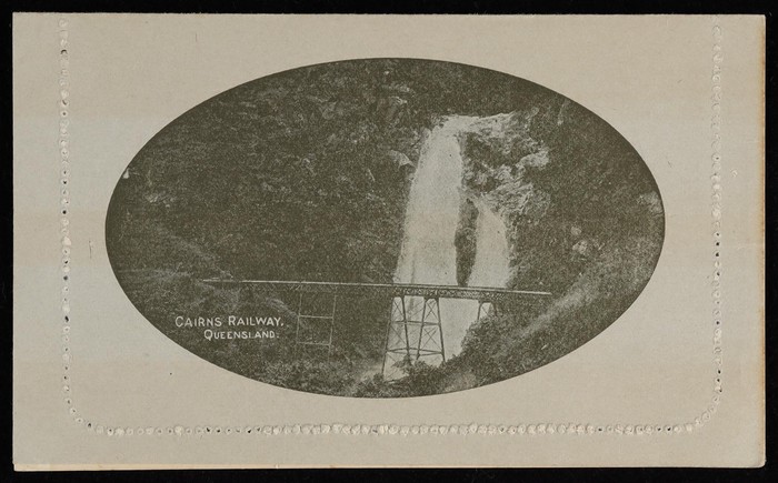 Kangaroo 1d grey-brown Die 2 view Cairns Railway. F-VF UN, front very sl aging stripes, view side VF. ACSC LC15(28B) cat $150. (Image1) (Image2)