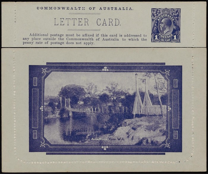 KGV 1d bright violet, Die 2, perf 10, view 'Avon River WA'. Superb fresh UN. ACSC LC21(7) cat $150. (Image1) (Image2)