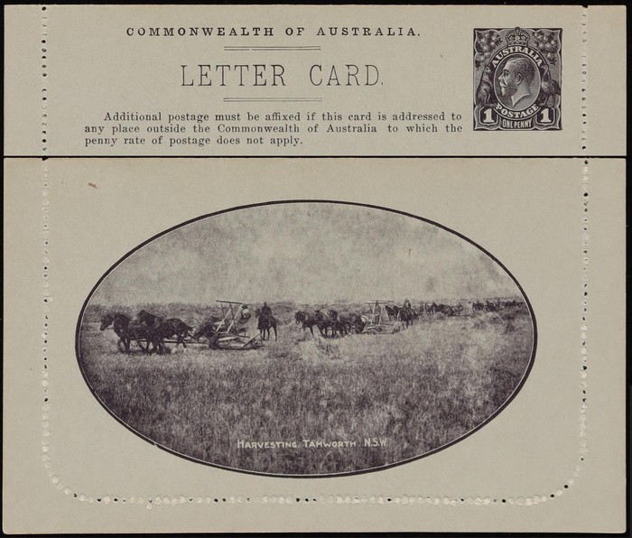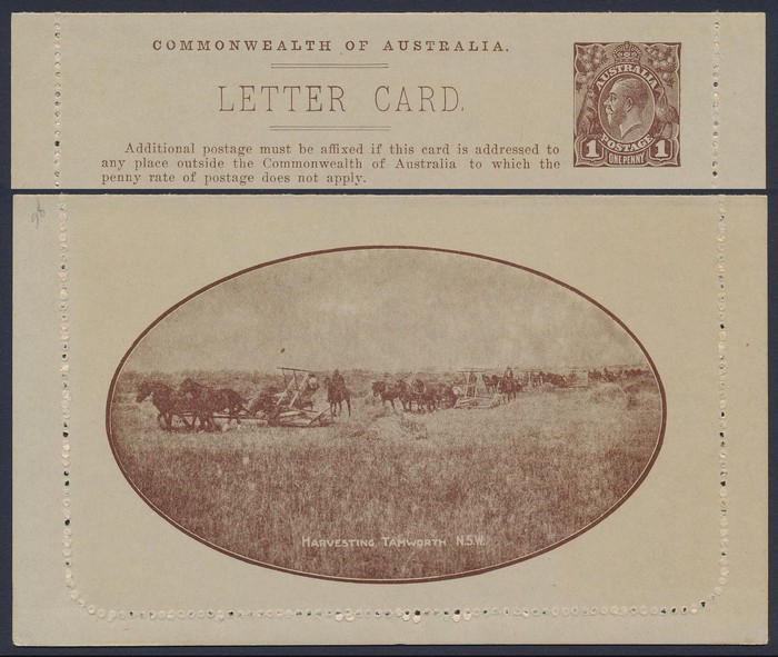 KGV 1d dark brown die 2, perf 10, view Harvesting Tamworth NSW. Superb UN. ACSC LC21(60) cat $150. (Image1) (Image2)