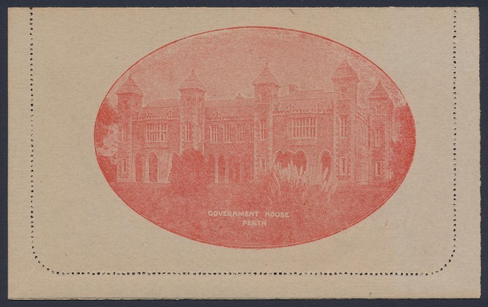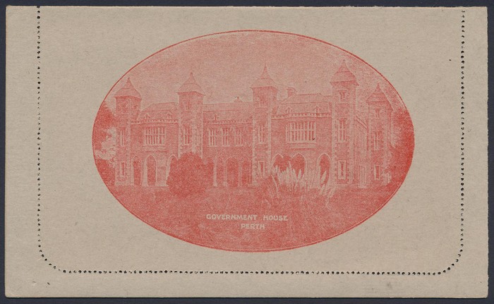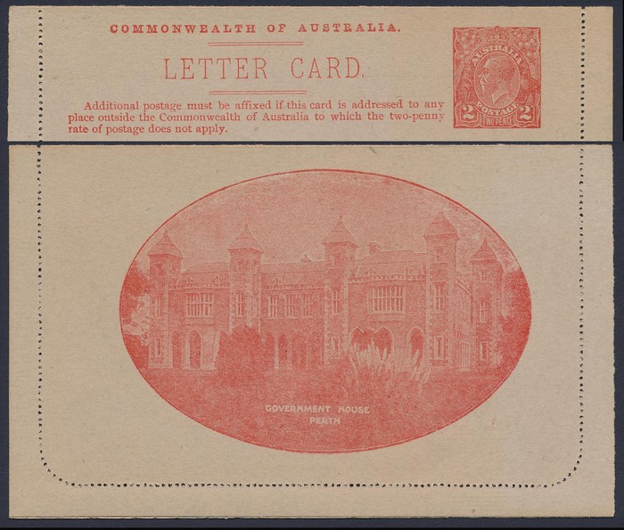 KGV 2d red, view Government House Perth. UN, suntanned area on text side. ACSC LC49(56E) cat $250. (Image1) (Image2)