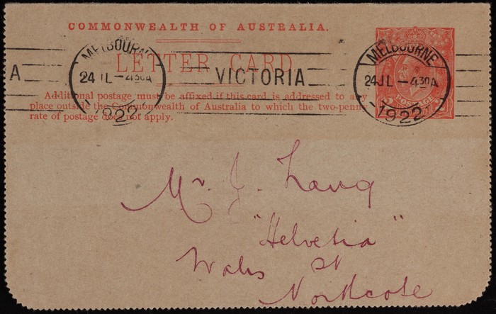 Lettercard: 1922