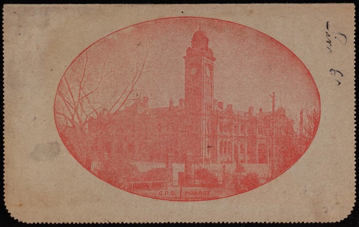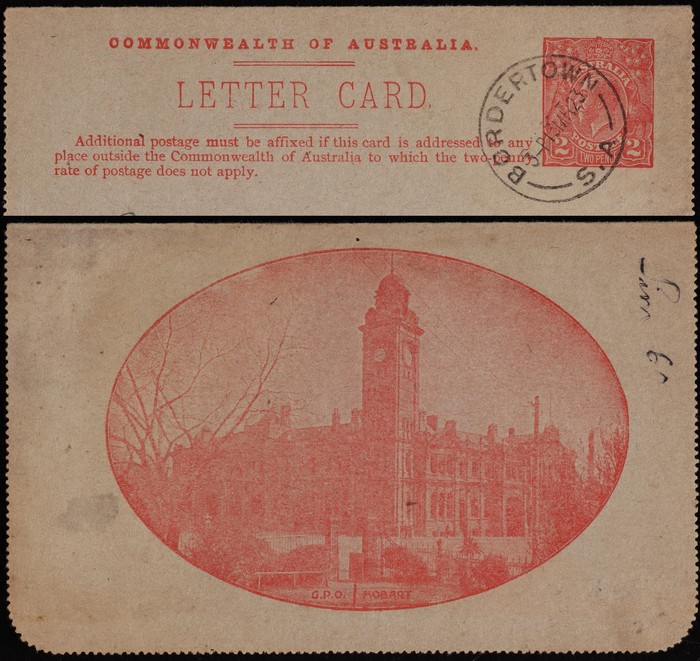 KGV 2d red, view GPO Hobart. FU, 'Bordertown SA 13 MR 23' cds. ACSC LC49(58A) cat $100. (Image1)