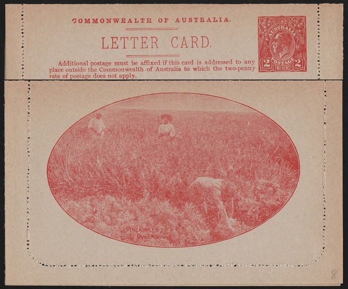 KGV 2d red, view Pineapples (pickers). VFU, 'Melbourne 5 SE 1923' pmk. ACSC LC49(102B) cat $100. (Image1) (Image2)