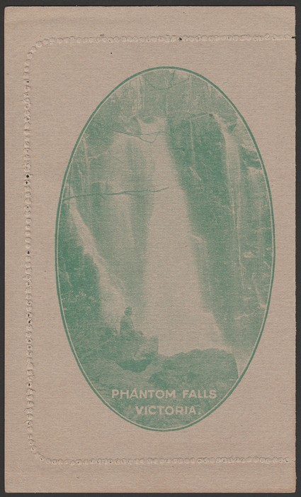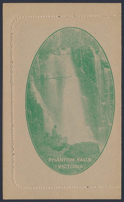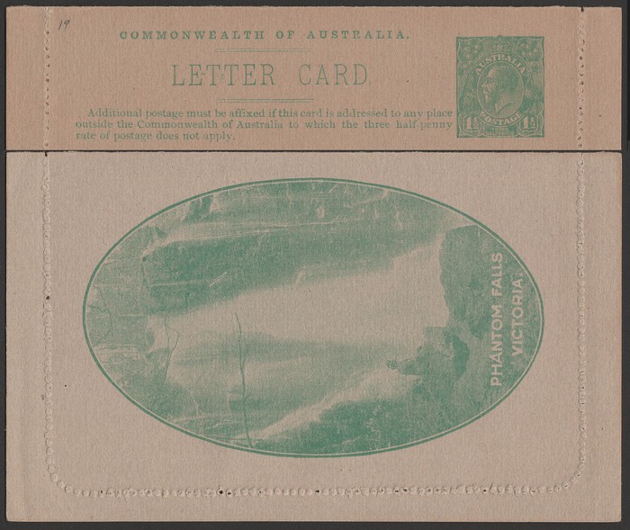 KGV 1½d green, perf 10, view Phantom Falls Victoria. F-VF UN, text side suntanned, view side superb. ACSC LC50(100B) cat $400. (P) (Image1) (Image2)