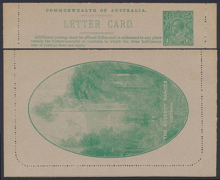KGV 1½d green, perf 12½, view 'The Gilderoy Ranges'. F-VF UN. ACSC LC51(52) cat $250. Scarce view. (Image1) (Image2)