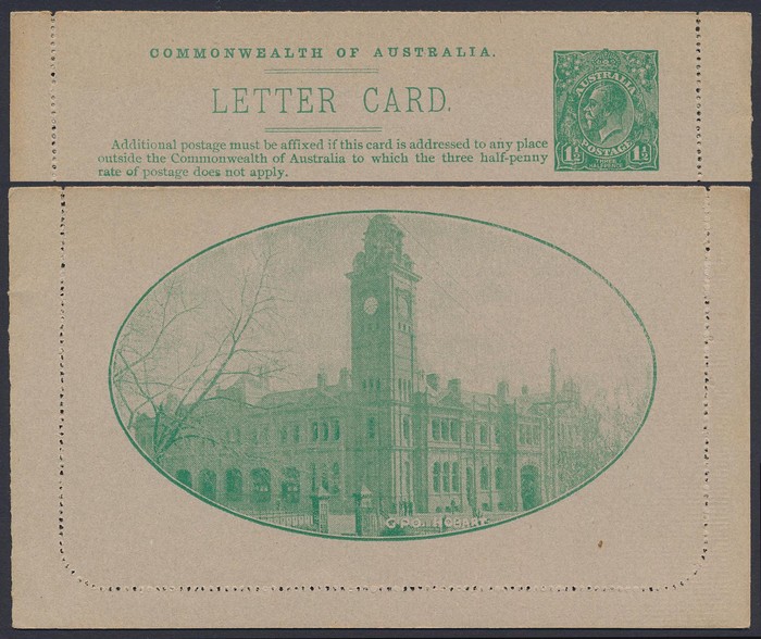 KGV 1½d green perf 12½, view GPO Hobart. Superb fresh UN. ACSC LC51(58B) cat $175. (Image1) (Image2)
