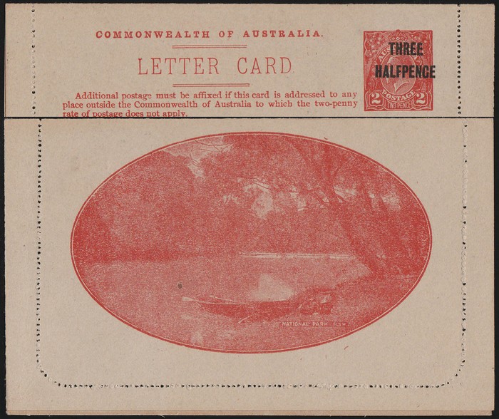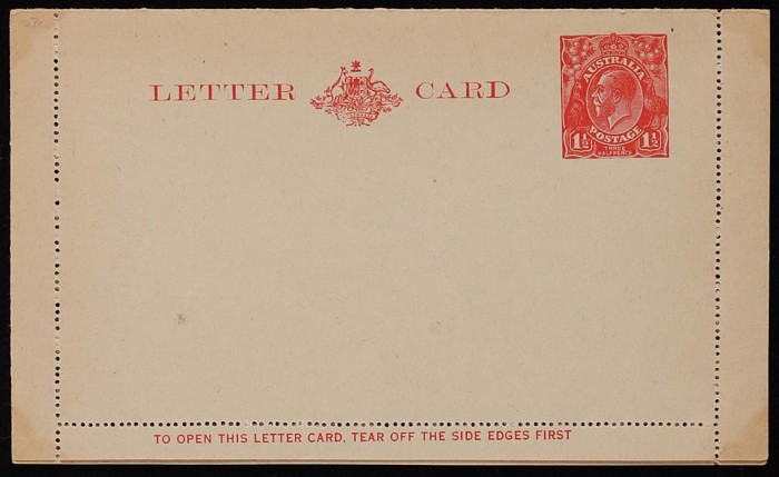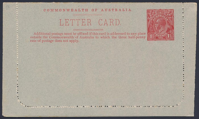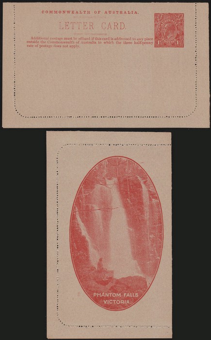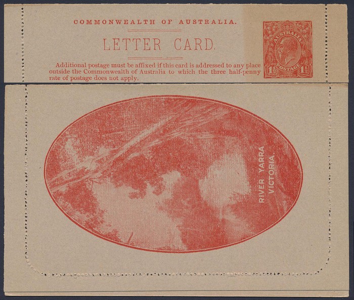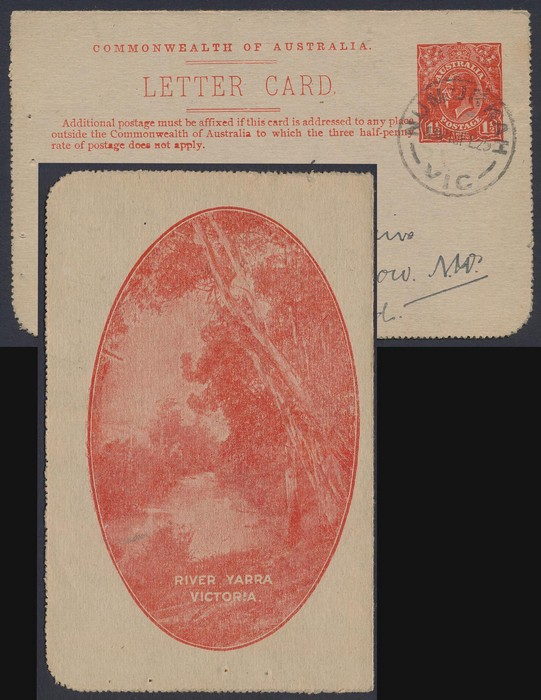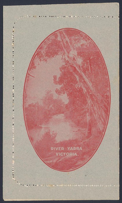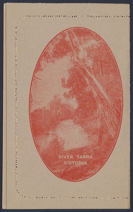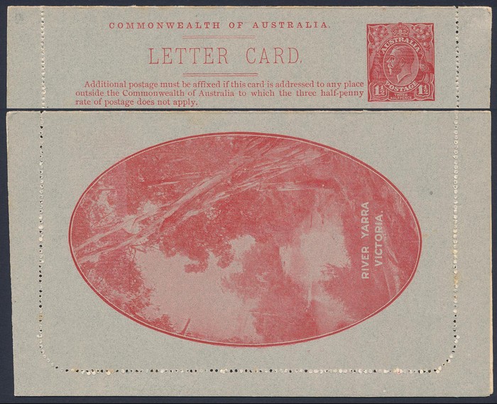 KGV 1½d red on dark grey stock, view River Yarra Victoria. UN, suntanned area on text side. ACSC LC55(114) cat $400. (P) (Image1) (Image2)