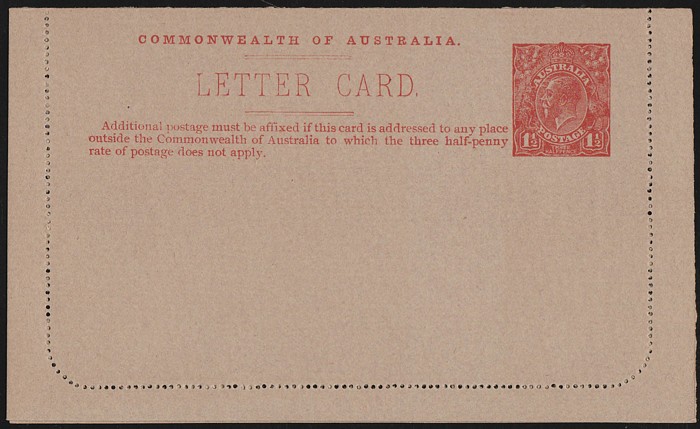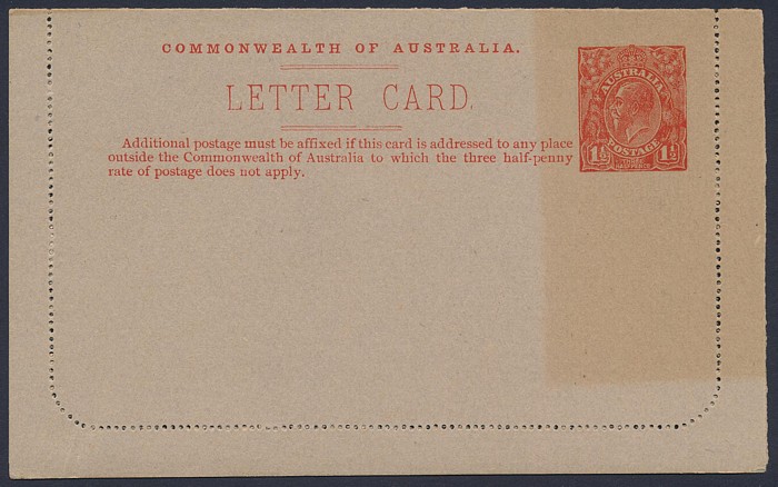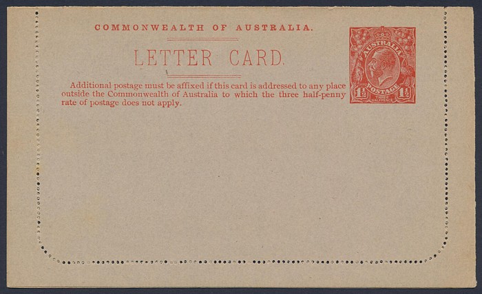 KGV 1½d red on dark buff stock. VF UN, sl 'shadow' left by cnr mounts. ACSC LC61B cat $100. (Image1) (Image2)
