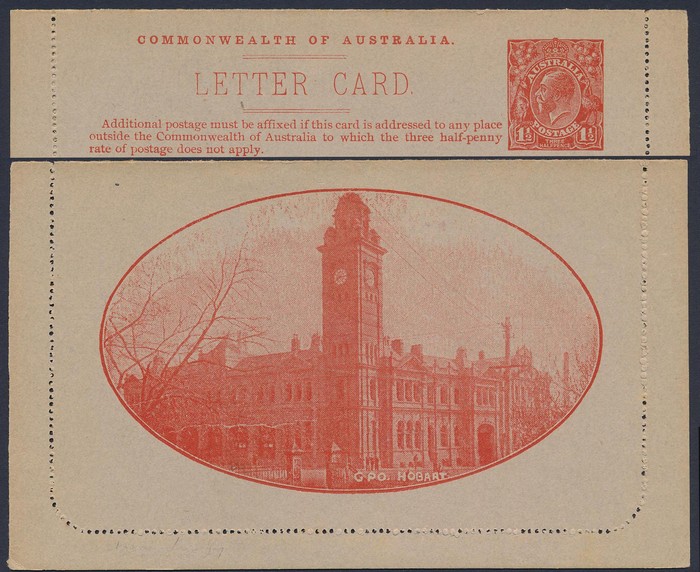 KGV 1½d red on grey stock, view GPO Hobart with cracked plate state 1. Superb fresh UN. ACSC LC55(58B)d cat $500. Rare. (P) (Image1) (Image2)