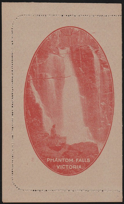 KGV 1½d red on grey stock, view Trentham Falls. View side superb fresh UN, suntan bars on text side. ACSC LC55(134) cat $750. Rare. (Image1) (Image2)