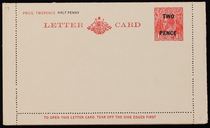 KGV 1½d on 2d red view Zoo Adelaide. View side superb fresh UN, suntan bars on text side. ACSC LC54(142C) cat $400. (Image1) (Image2)