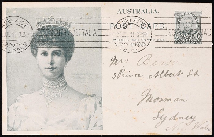 Coronation 1d grey-black Queen unframed rectangle, white reverse. FU, sl tones, 'Adelaide 25 JUL 11' pmk. ACSC P11A cat $75. (Image1) (Image2)