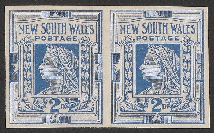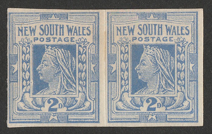 cobalt-blue, IMPERF horiz pr, wmk crown NSW (w40). VFM, folded through central margin, all 4 margins. SG 302a cat £300. (P) (Image1)