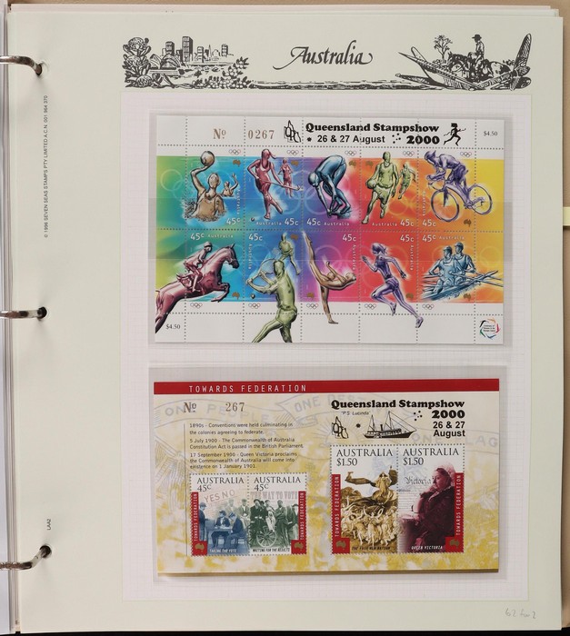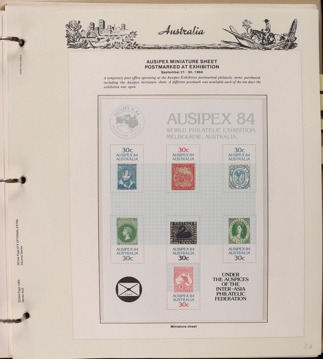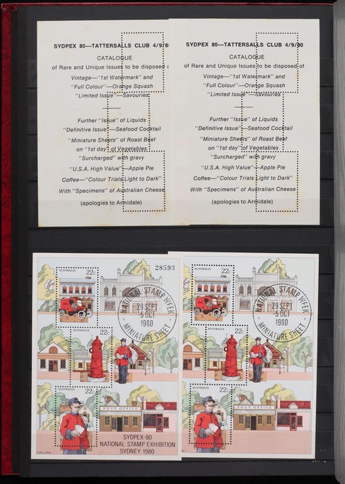 314 imageExhibitions, Stamp Shows & Commem opt M/sheets 1970-2008 collection inc 1970 Cook Anpex, various diff Ausipex opts, 1985 Navigators opt Jupiter's Casino, or Stampex 86, 1990 Stamp Anniv with NZ, London or Singapore opts, 1994 Zoos (4), World Down Under (5), 1996 Pets (7), 1997 Wetlands $10 for Pacific 97, Italia 98 & Phila Nippon. Plus Aeropex 94 black print WA Goldfields Local Post Replicas (6) & more. VF fresh MNH. Retail $900. (70) (Image1) (Image2) (Image3) (Image4) (Image5) (Image6) (Image7) (Image8) (Image9) (Image10) (Image11) (Image12)