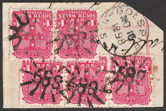800 of Gurrundah type 4B (RRRRR) on 2½d blue allegorical, possibly the only example recorded. (P) (Image1)