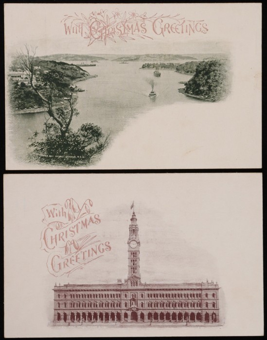 Numeral 1½d blue Christmas Greetings views Hawkesbury River, Mosman's Bay & GPO. All diff colours. VF UN, mostly fresh. PSSA PC23a. (4) (Image1) (Image2)