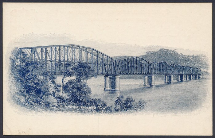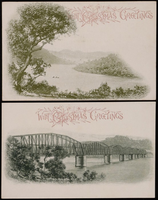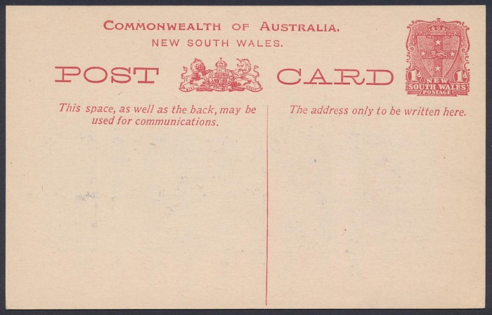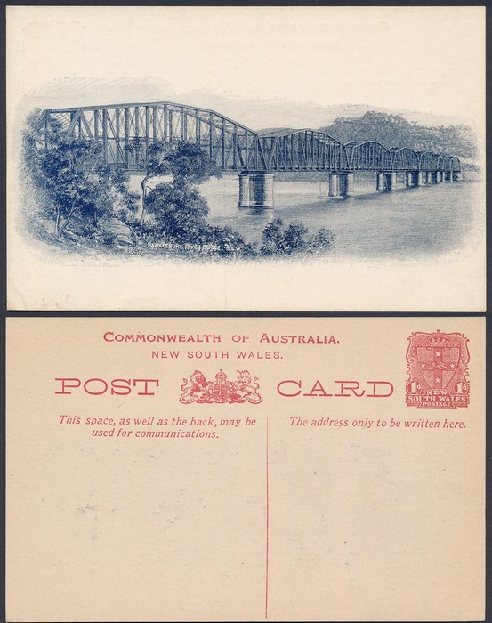 1d red divided front, view Hawkesbury River Bridge in blue-black, w/o 'Greetings'. Superb fresh UN. PSSA PC31a. (P) (Image1) (Image2)