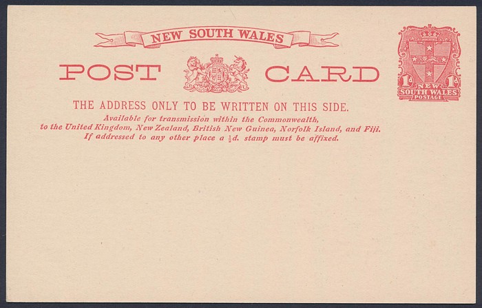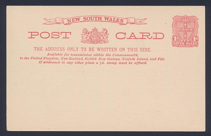 1d red Die II, cream card, view Hawkesbury River in black, 'Greetings' in orange-buff. Superb fresh UN. PSSA PC21a. (Image1) (Image2)