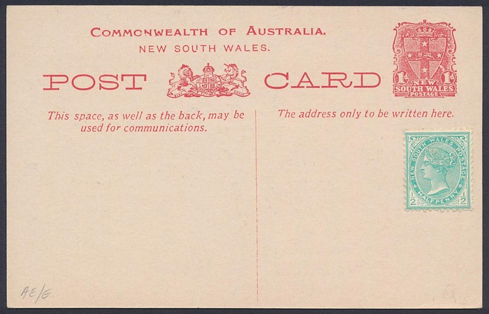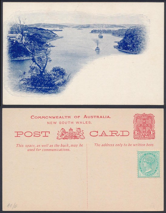 1d red divided front, view Mosman's Bay in blue, w/o 'Greetings'. Superb fresh UN, QV ½d added. H&G 30. (P) (Image1) (Image2)