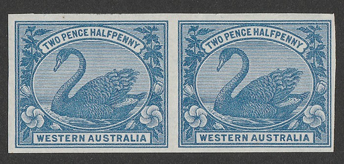 2½d blue IMPERF horiz pr, wmk W crown A, from DLR archive imprimatur sheet. Superb fresh MNH, all 4 margins. SG 114(p). Rare, only 1 sheet existed. (P) (Image1)