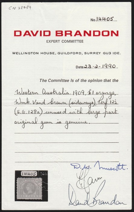 orange-brown wmk V crown facing left. Superb fresh MLH, excellent centring. Scott 88 cat US$450, ACSC W68a cat $750+. SG 128 cat £450+. Exp Their. (P) (Image1)