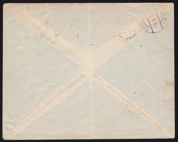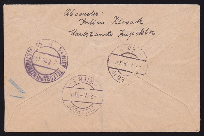 'Flugpost Wien 16 V 18' arrival b/s. Mi 225xI & 226xC cat €309+. Scarce correct franking with rare perf. (P) (Image1) (Image2)