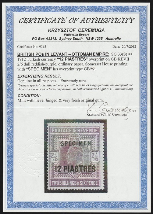 Get Market Data for [British Offices in Turkish Empire 33(s).] Visual Pricing Guide Sample Census