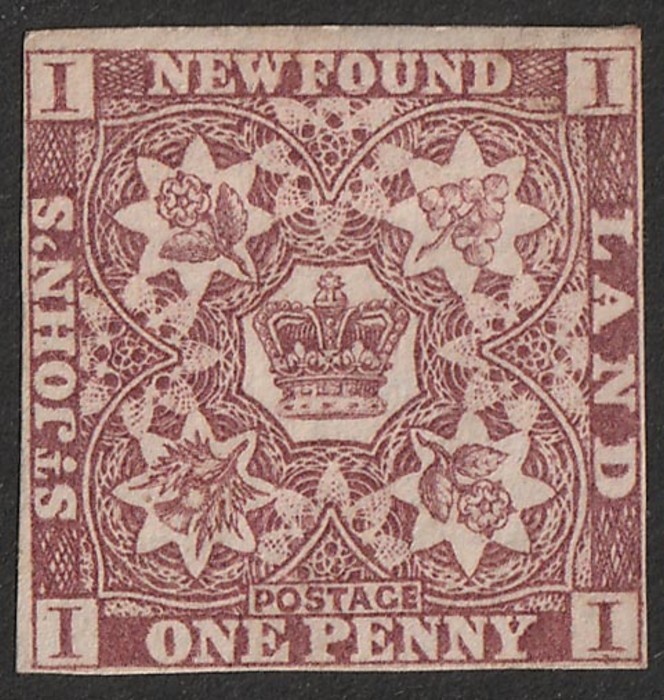 Flowers 1d brown-purple. VFM, 4 margins. SG 1 cat £200. Unitrade 1 cat C$160. (Image1)