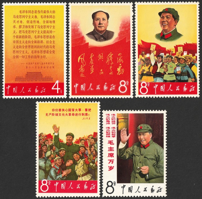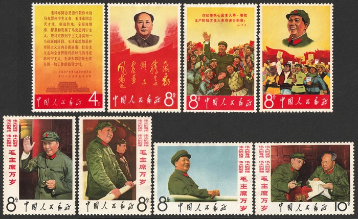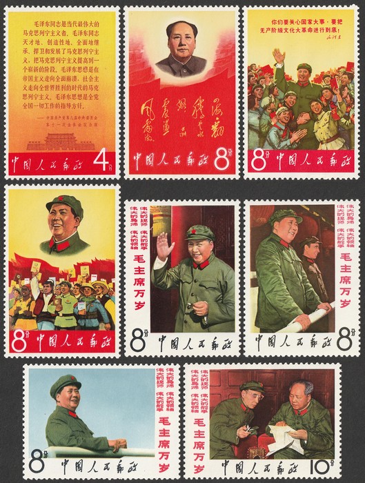 Chairman Mao part set inc 4f text,8f Mao & Poem,8f Mao & crowd,8f Mao & soldiers,8f Mao greeting. VF fresh MNH. W2-1,2,3,4,5. SG 2354-58 cat £525. (5) (P) (Image1)