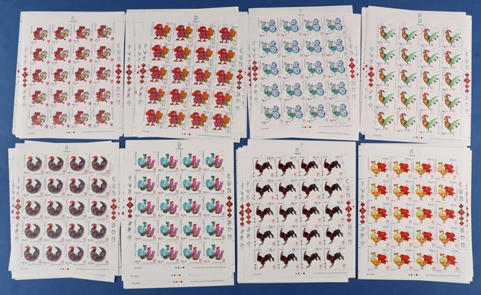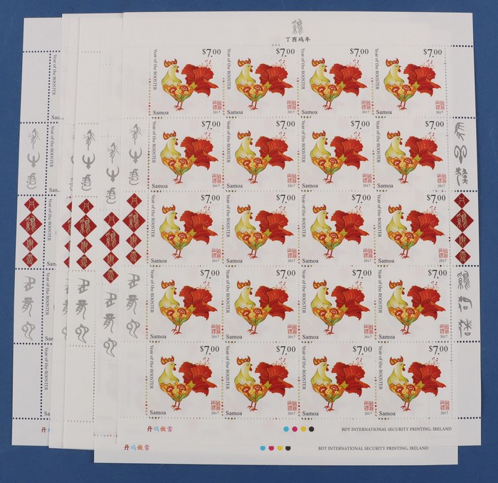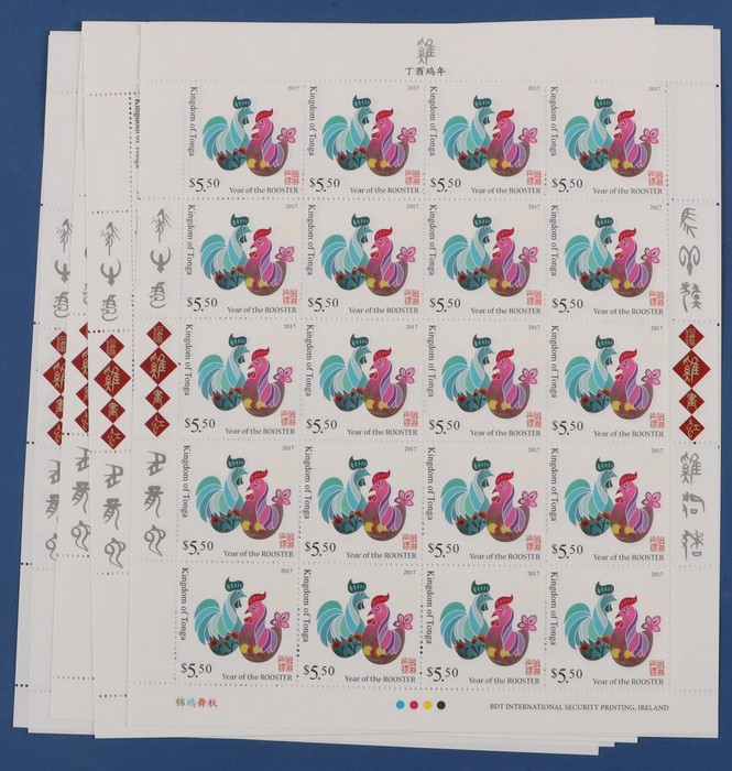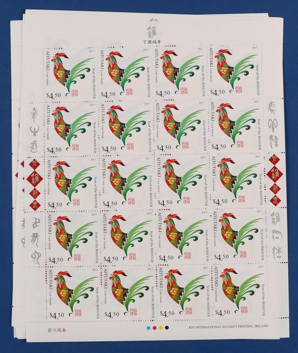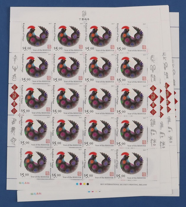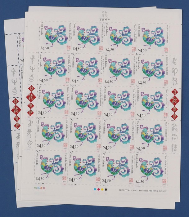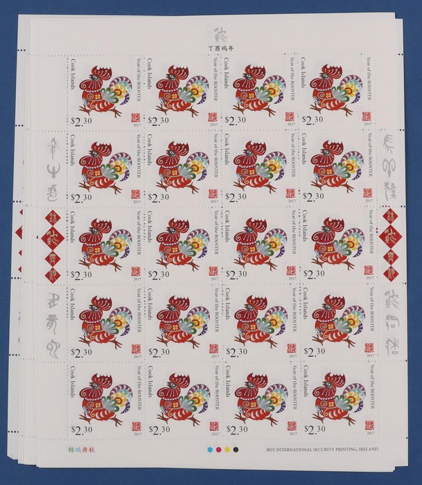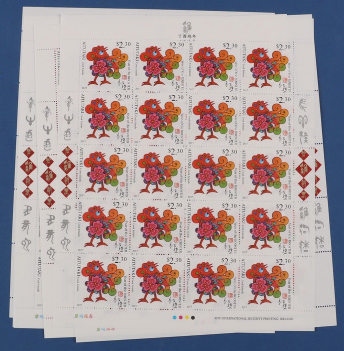 427 image2017 Lunar New Year of the Rooster 200 comp sets from Aitutaki, Cook Islands, Samoa & Tonga = 800 sets, in sheets of 20, fresh MNH. FV A$5170. SG cat £7950 = A$16,000. (Image1) (Image2) (Image3) (Image4) (Image5) (Image6) (Image7) (Image8) (Image9)