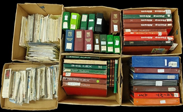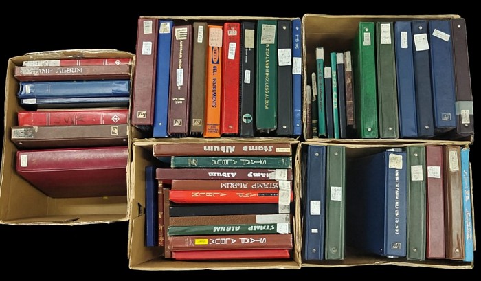 433 image5 Archive cartons with 51 s/books & FDC binders 40 large & 11 small s/books. Worldwide stamp albums, stockbooks & binders, a minimum of 10 quality branded albums /binders in as-new condition (incl. hingeless/Seven Seas-type). Country-labelled volumes noted: USA, GB, Hungary, NZ, Scandinavia & World. strong Australia. Includes a wonderful 800+ covers (FDCs / PSEs / covers, 1926?2008) Czechoslovakia FDCS. Thematics inc Disney, Space, cats etc Basically unchecked, as received and offered as one lot sorter lot Heavy. Many, many 1000s in 51 albums (Image1)