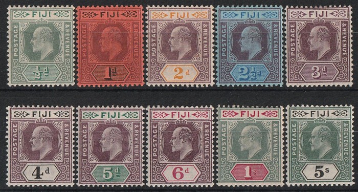 ½d to 5/-, wmk Crown CA. VF fresh M/MLH. Scott 59-68 cat US$153. SG 104-113 cat £154. (10) (Image1)