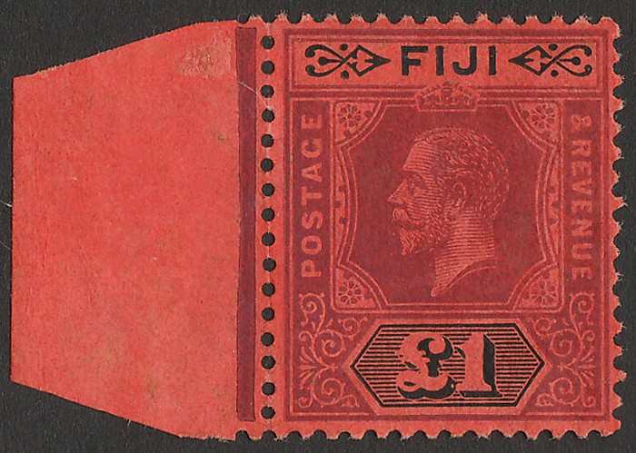 £1 purple & black on red. Stamp VF fresh MNH, left marginal. Scott 78 cat US$360 for M, SG 124 cat £300 for M, should be at least double, £600 MNH. (P)