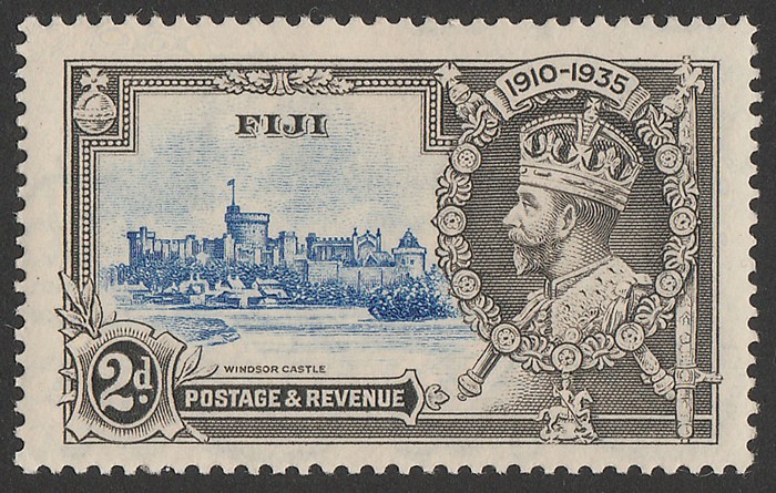 Jubilee 2d ultramarine & grey variety 'diag line by turret'. VF fresh M. SG 243f cat £120. (P) (Image1)
