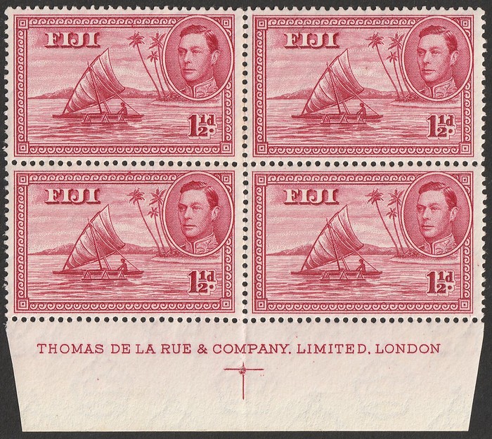 1½d deep carmine, Die II, bottom marginal blk of 4 with DLR imprint. VF MNH. SG 252a cat £30+ for M singles plus premium for imprint blk. (Image1)