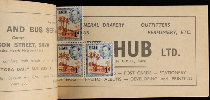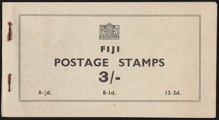 3/- pale greenish-buff cover with 3 advert pgs & wax interleaving & stamps 1d (3) & 2d (6). SG SB3a cat £1200. Very rare. (P) (Image1) (Image2)