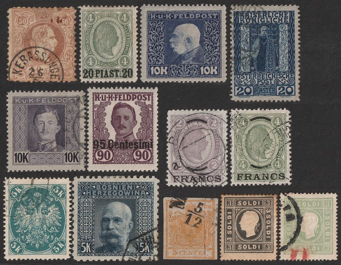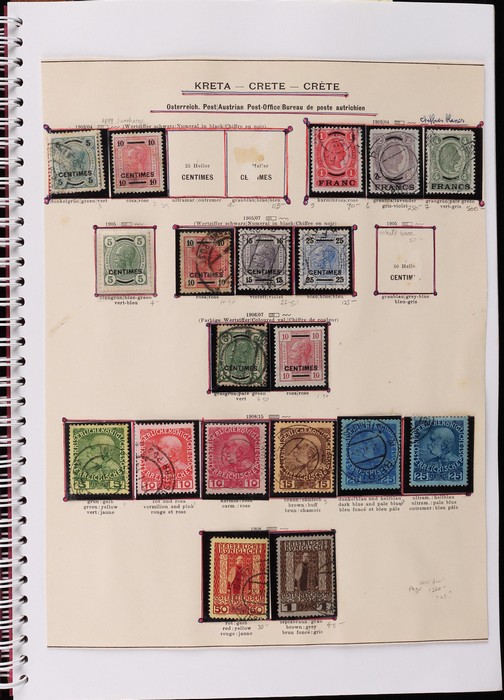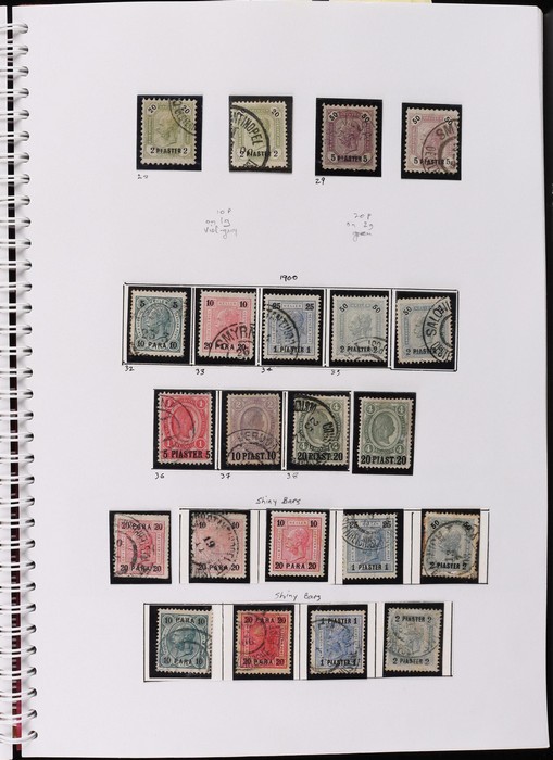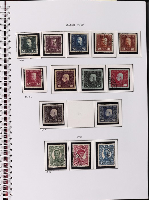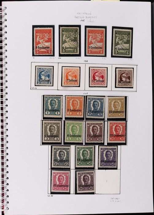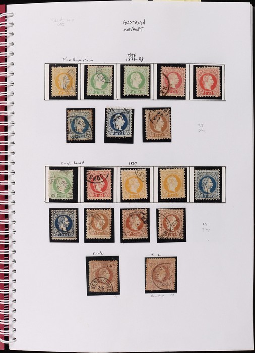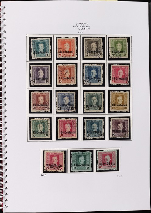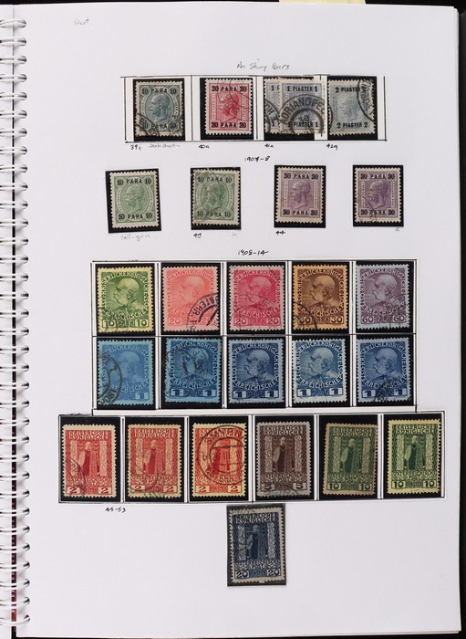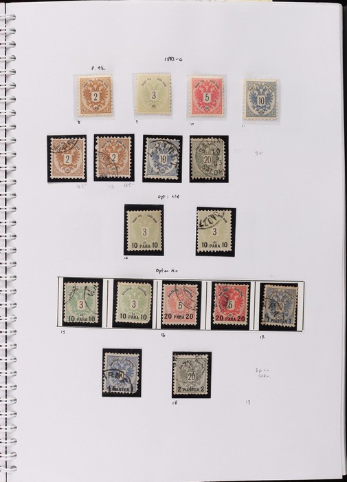 445 imageAustria Territories & Occupations: 1850-1920 collection in binder. PO in Turkey 1867-83 Emperor to 50s inc printings. 1900 opt Emperor to 20Pi. 1908-14 Emperor set to 20pi. Military Post 1915-17 Emperor vals to 10K. Italy & Romania 1918 opt sets. Crete-French Currency 1903-04 opt Emperor vals to 4F U. Bosnia & Herzegovina 1879-1900 Arms sets inc perfs, types & shades and 1900-01 set to 5K plus perfs & imperf set to 5K. 1912 Emperor vals to 5K & 1916-17 to 10K. 1917 Emperor Karl set to 10K. Yugoslavia 1919 opt Bosnia Pic set to 10K. 1919 opt Emperor set to 10K. Lombardy & Venetia 1850 Arms set to 45c plus 15s with 3s black & green. 1861-62 Oval Emperor vals to 10s & 1863-64 Arms to 15s plus perfs. 1858 Journal Tax 2k. Mostly G-VF M/U, mixed in parts. SG cat £3200+ = A$6400+. (930) (P) (Image1) (Image2) (Image3) (Image4) (Image5) (Image6) (Image7) (Image8) (Image9) (Image10) (Image11) (Image12) (Image13) (Image14) (Image15) (Image16) (Image17) (Image18) (Image19) (Image20) (Image21) (Image22) (Image23) (Image24) (Image25) (Image26) (Image27) (Image28)