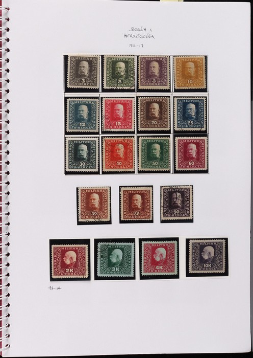 446 imageAustrian Bosnia Hercegovina: 1900-18 collection on pages inc 1879 & 1895 to 25K, 1900-01 set to 5K, 1906 Pictorials set to 5K, 1910 Pictorials set to 10K, 1912 & 1916 sets to 10K, 1912 set to 10K (3-10K on piece), 1906 Postage Due set to 1K. Many comp sets, all diff. VFU. SG cat £1400+. Attractive collection. (200+) (Image1) (Image2) (Image3) (Image4) (Image5) (Image6) (Image7) (Image8) (Image9) (Image10) (Image11) (Image12) (Image13) (Image14)