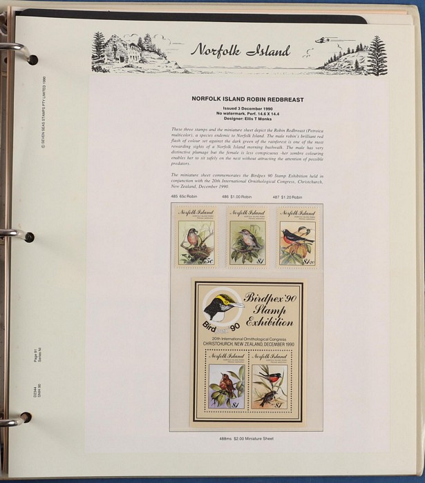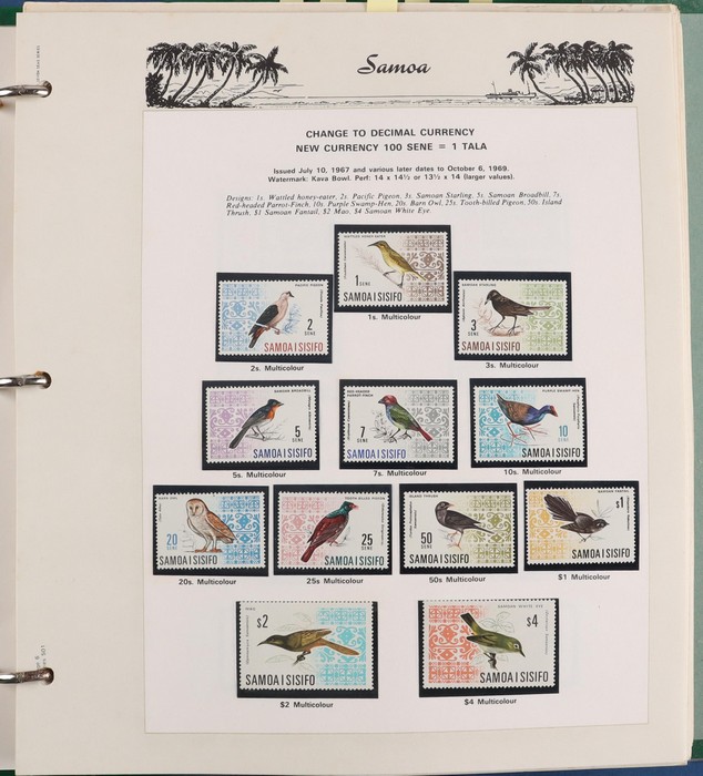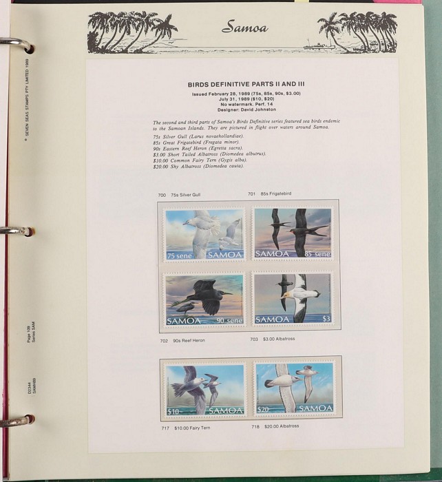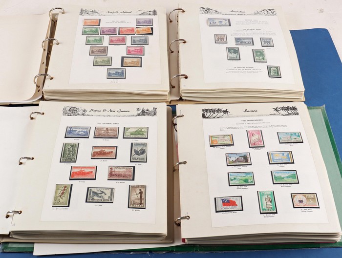 453 imageBritish Commonwealth/Pacific Area 4 volume collection with AAT 1957-1989 comp inc 1966 Pics to $1. Christmas Is 1957 QEII to 1990 Birdpex Exhibition M/sheet inc 1963 Pics to $1 & 1968 Fish comp. Cocos Is to 1990 Airmail $5 inc 1963 Def set. All fresh MNH, retail $900. Vol 2 with Norfolk Is 1947-90 comp inc 1947 Ball Bay to 2/- blue, 1953 Pics to 5/- brown Bridge, 1960 Local Govt, 1960 Pics to 10/- Bird & all other pre-decimals mostly MNH. Then decimals to 1990 Birdpex M/sheet with 98 Pic/Commem sets inc vals to $5 & 13 M/sheets inc 1974 UPU, listed retail $950. 3rd vol with PNG to 1990 inc 1952 Pics to £1 Fisherman (glazed gum MNH, retail $200). 1963 Defs to QEII £1, 1964 Birds to 10/- & all other pre-decimals., plus 116 decimal Pic/Commem sets & all M/sheets, retail $900. Finally Samoa 1962-90 in vol 4 with 120 Pic/Commem sets inc 1967 Birds to $4 & 1972 Wildlife to $5 Lizard, plus 50 assorted M/sheets. Appears comp throughout, mostly F-VF MNH with 470 Pic/Commem sets & 86 M/sheets. (Image1) (Image2) (Image3) (Image4) (Image5) (Image6) (Image7) (Image8) (Image9) (Image10) (Image11) (Image12) (Image13) (Image14) (Image15) (Image16) (Image17) (Image18) (Image19) (Image20) (Image21) (Image22) (Image23) (Image24) (Image25) (Image26) (Image27) (Image28)