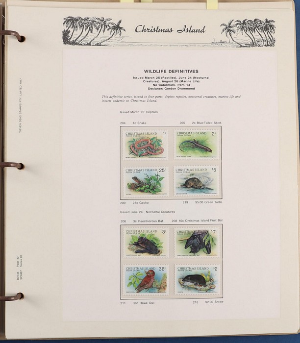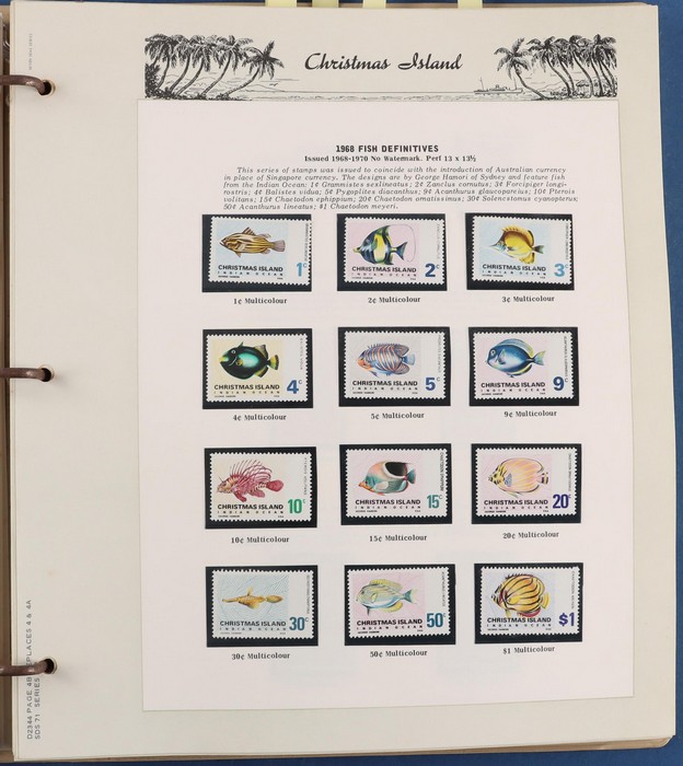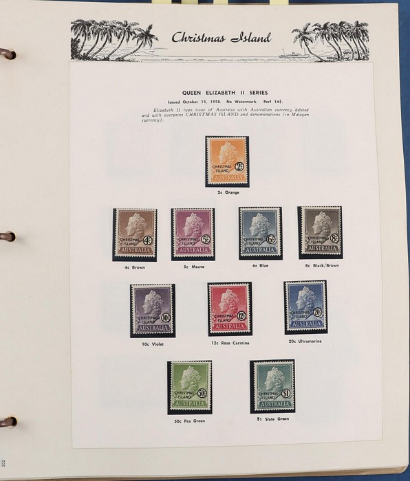 443 Australian Territories MNH collection in 2 Seven Seas hingeless albums. Inc AAT 1957 to 2015, inc 1957-59 + 1966 sets, later issues & M/Sheets, some blks of 4 FV $205. Christmas Is 1990-2015 inc many Lunar New Year sets, M/Sheets gutter strips largely VF. Total FV for both $660 plus another $250+ for the albums = $810+. (c650 45 M/Sheets).