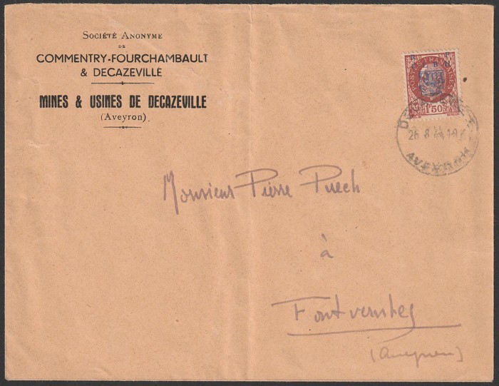 'RF CLBH' Arms opt Petain 1.50F, tied to cover (centrefold) by 'Decazeville Aveyron 26 8 44' cds. Yv 6 cat €110 as M & unpriced U. Mayer 6 cat €550. Very rare usage. (P)