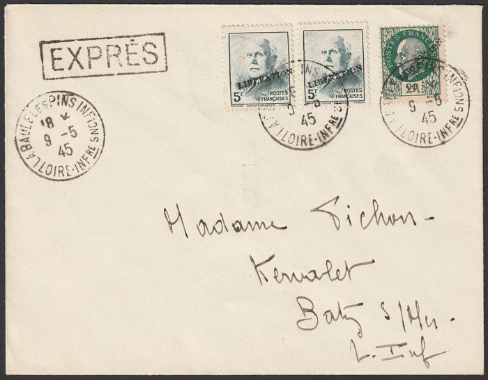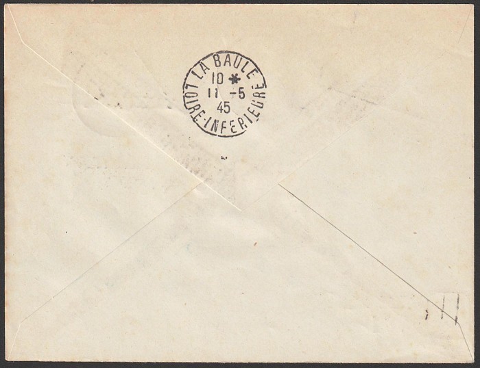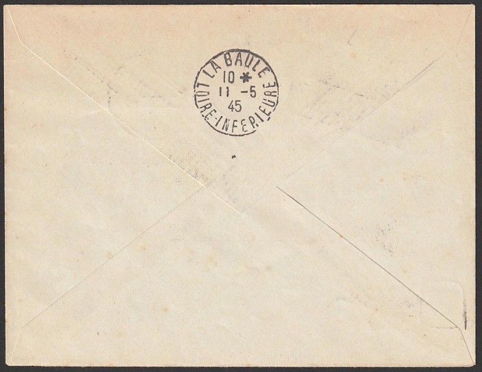LIBERATION opts Petain 2F & 5F (2), tied by 'La Baule les Pins Infions Loire' to Express cover. Mayer L2 & 3 cat £600+. (P) (Image1) (Image2)